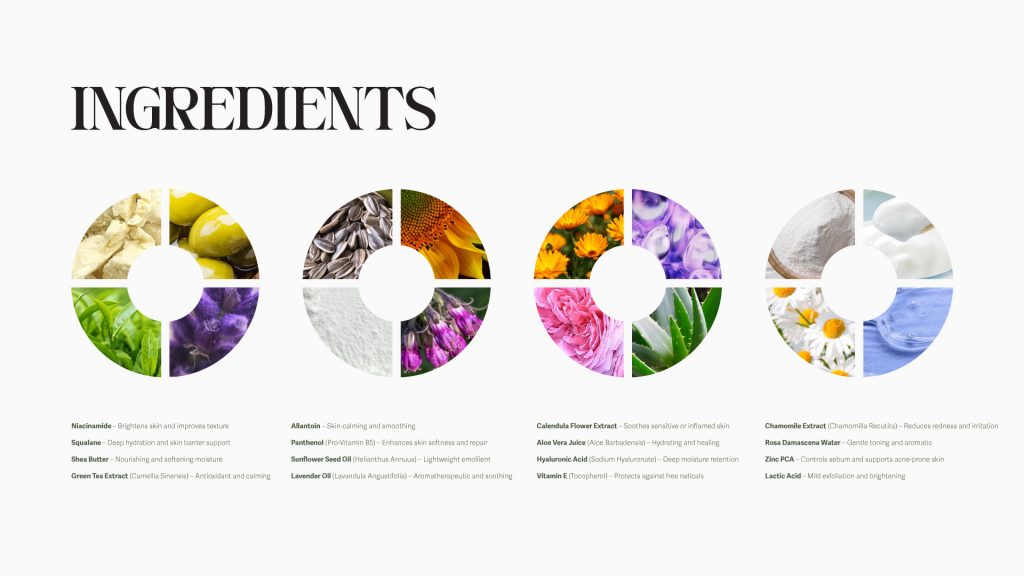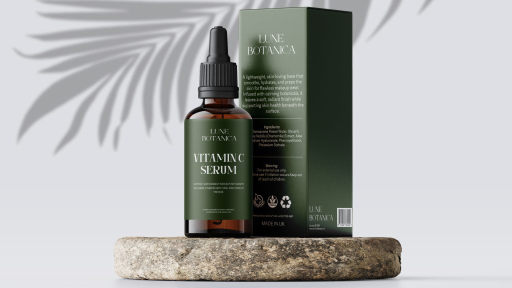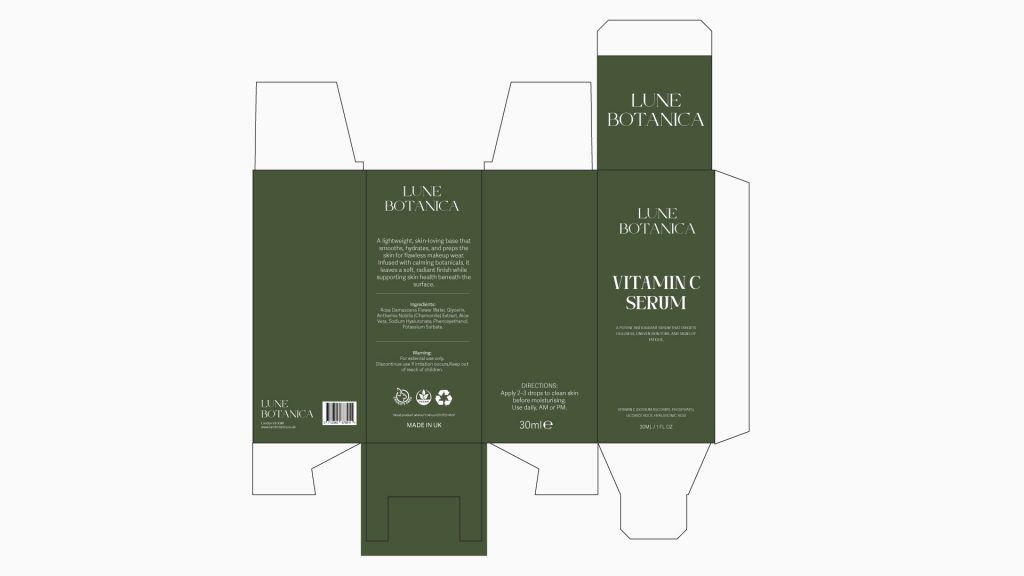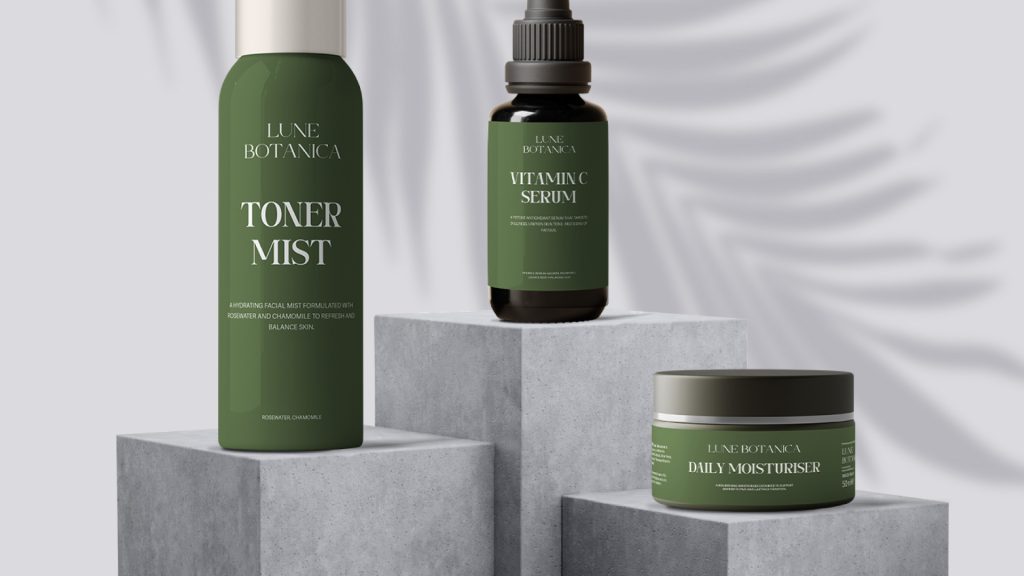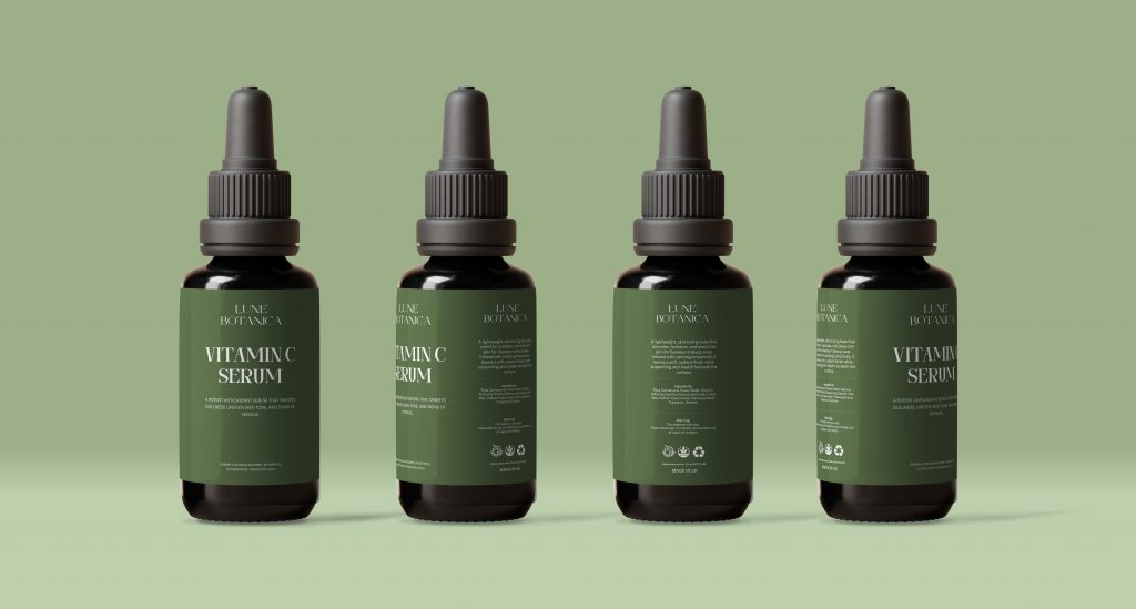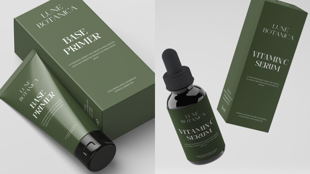 The design balances luxury with accessibility by emphasising product information and using a subtle logo. Its colour palette and typography highlight Lune Botanica’s focus on botanical purity and eco-conscious values, resulting in a cohesive and elegant brand presentation.