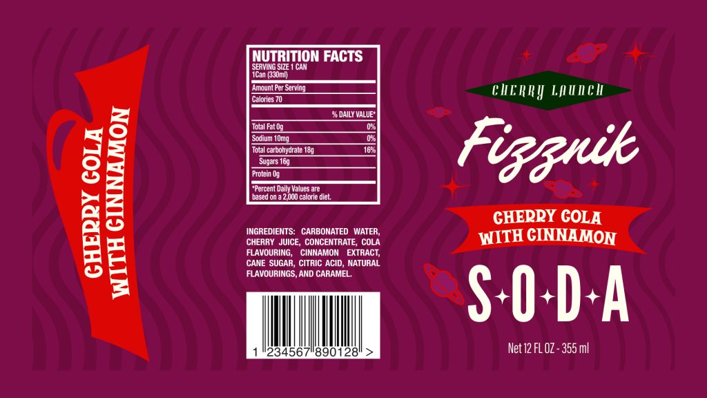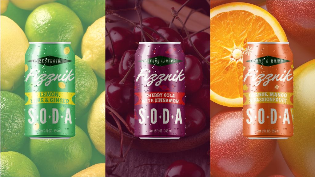 Fizznik is a self-initiated soda brand created to explore bold, retro-inspired packaging with real shelf impact. The goal was to design something fun, energetic, and full of character—bringing atomic-age flair to a modern audience.