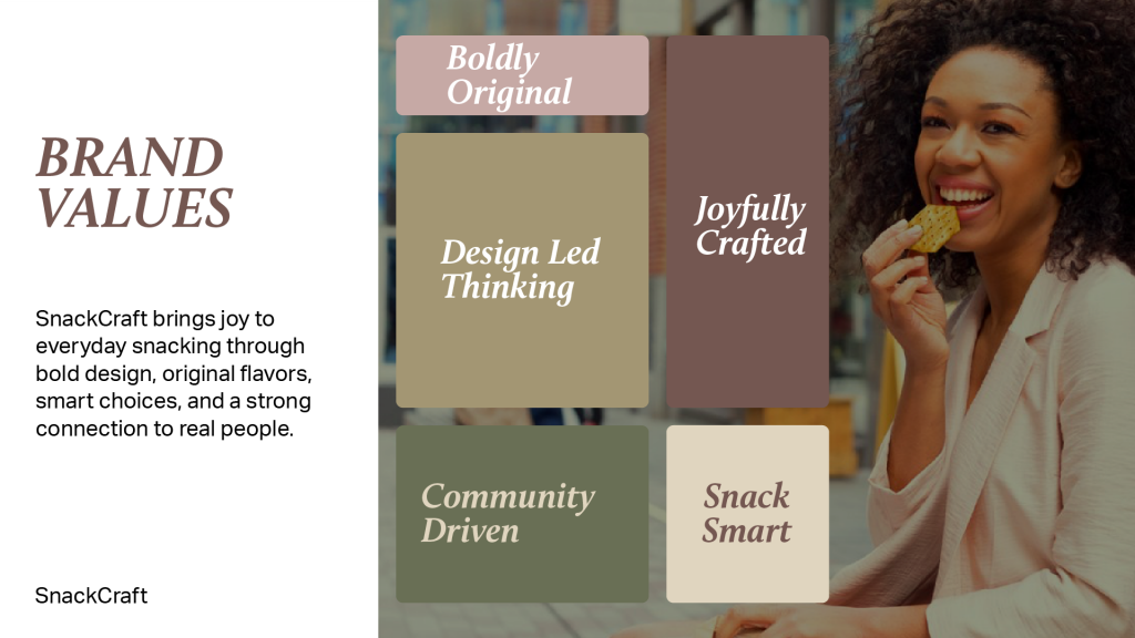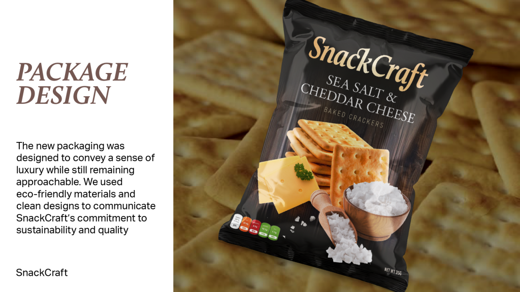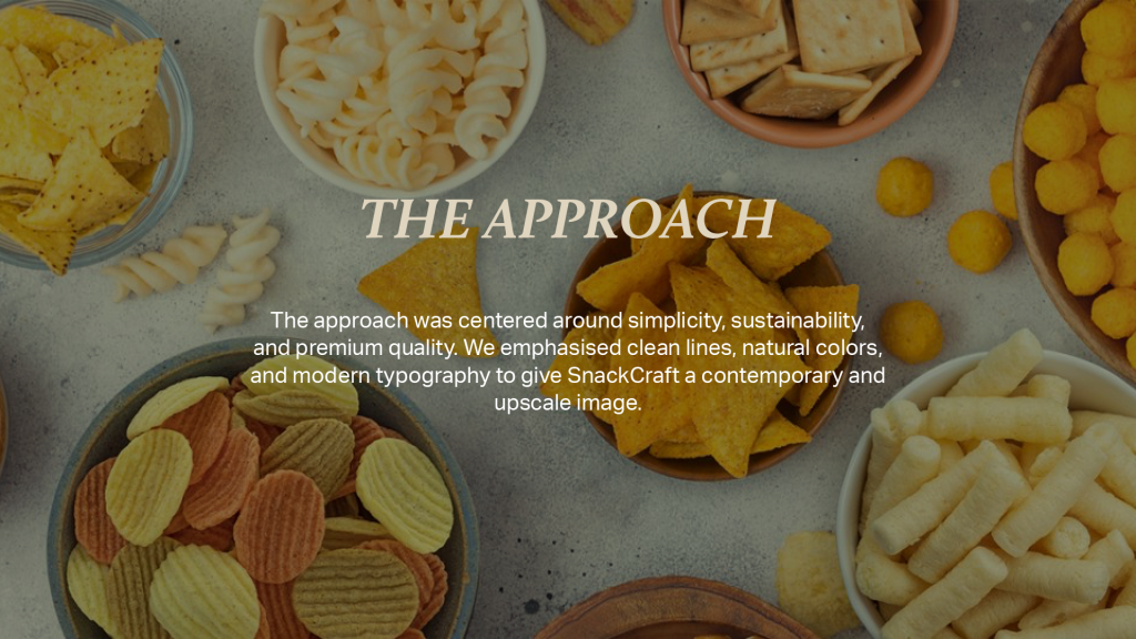 The intention was to shape SnackCraft into a premium snack brand that resonates with modern consumers who value wellness and strong aesthetics.”